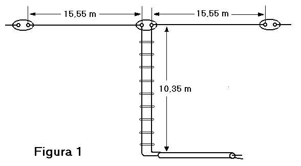 La antena esta formada por un cable horizontal de 31,10 m. dividido en dos partes exactamente iguales (2x15,55 m.). En el centro se coloca un aislador tipo “huevo” o similar y es donde se conecta la línea de cable paralelo (escalerilla) que si esta al aire debe medir 10,36 m. a cuyo extremo se puede conectar cualquier longitud de cable de 50 ó 75 ohmios para llegar hasta el transmisor que puede estar situado incluso a 30 m. de distancia. Se aconseja el uso de un acoplador para corregir las pequeñas desadaptaciones que se presentaran.