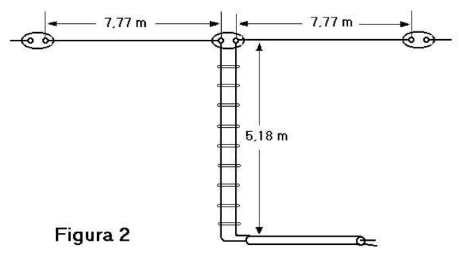Si no se dispone de espacio suficiente, (unos 32 m.) esta antena nos permite que dejemos colgando hacia abajo de forma más o menos vertical, unos 3m en cada uno de sus extremos. De esta manera el espacio requerido será de unos 26 m. Para ello es conveniente que la antena este situada a 10 ó 12 m. del suelo.