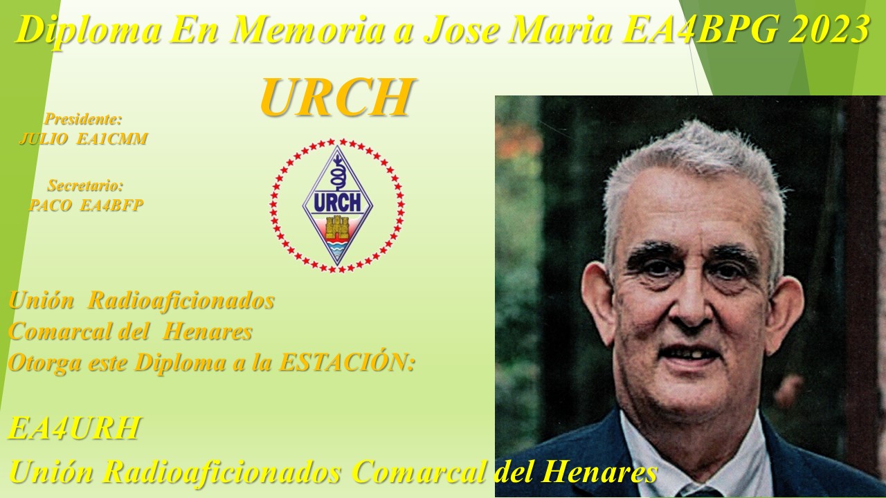 PROPÓSITO: Desde nuestra Sección Comarcal del Henares, queremos sacar este Diploma para homenajear y recordar a nuestro compañero fallecido, José María EA4BPG.